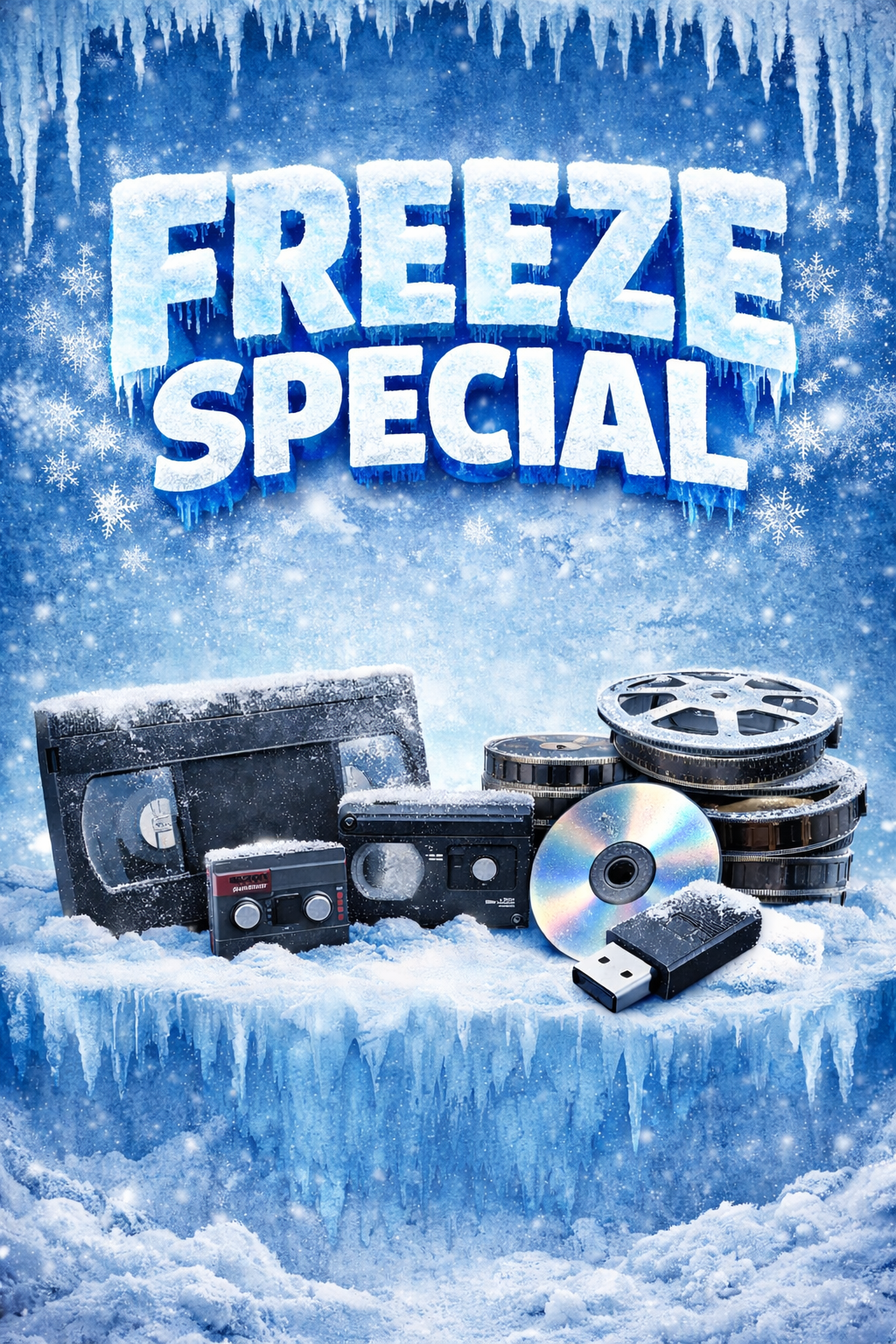Want to make sure your home videos are safe and sound forever? We’re offering a special deal: 10% off digitizing your tapes when you bring in 6 or more! That means it’s only $16.87 per tape.* Simply order online or in store and use code FREEZE to get your discount.